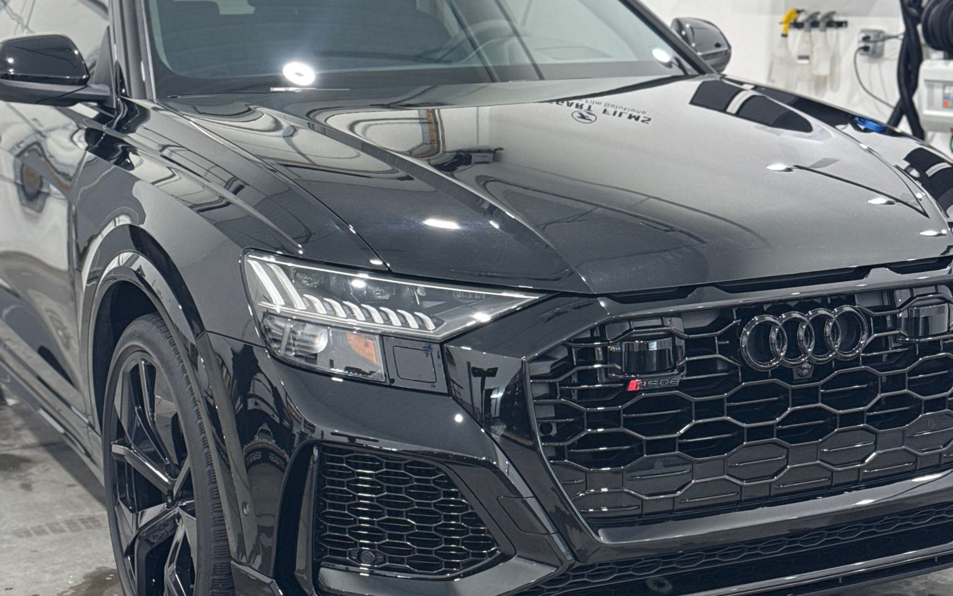 To finish things off, we did a "wheels off" ceramic coating in Modesta BC09 on the complete wheels and calipers. We also coated the vinyl wrap and ppf in Modesta BCX to give the color of the vinyl optimal longevity. The windshield was then coated with Modesta EGC (exterior glass coating). Final touches for delivery included a light vacuum of all carpets, tire dressing, and a quick wipe down.