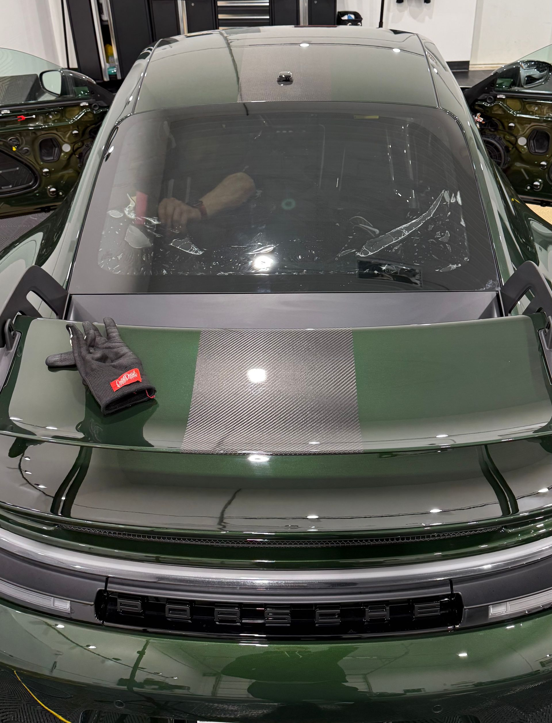 Front Bumpers on the 992.2 are significantly harder then the previous model even though it looks more simple escpecailly on non gt3 bumpers that dont have the big air damns in the front ive seen two kinda kits one with bit relief cuts and other without usally with these bumpers you really have to get the stretch done right the first time or youll end up witha gnarly work line right in the middle of the bumper or in the corners on the iner side of the bumper with fingers popping up